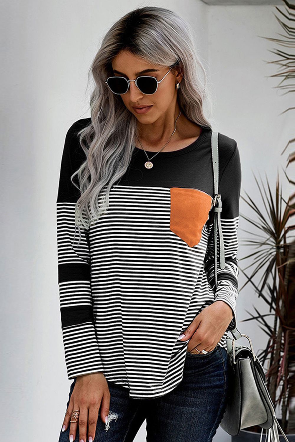 Striped Round Neck Long Sleeve T-Shirt
