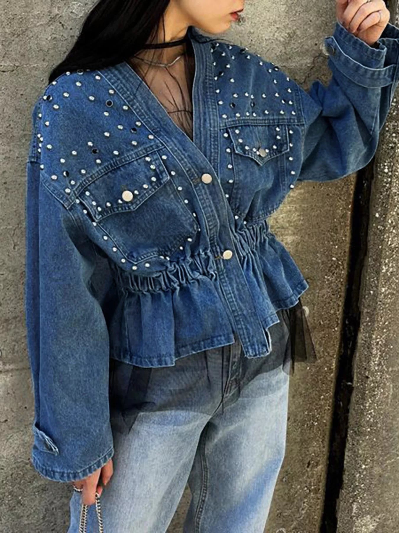 Studded Button Up Denim Jacket