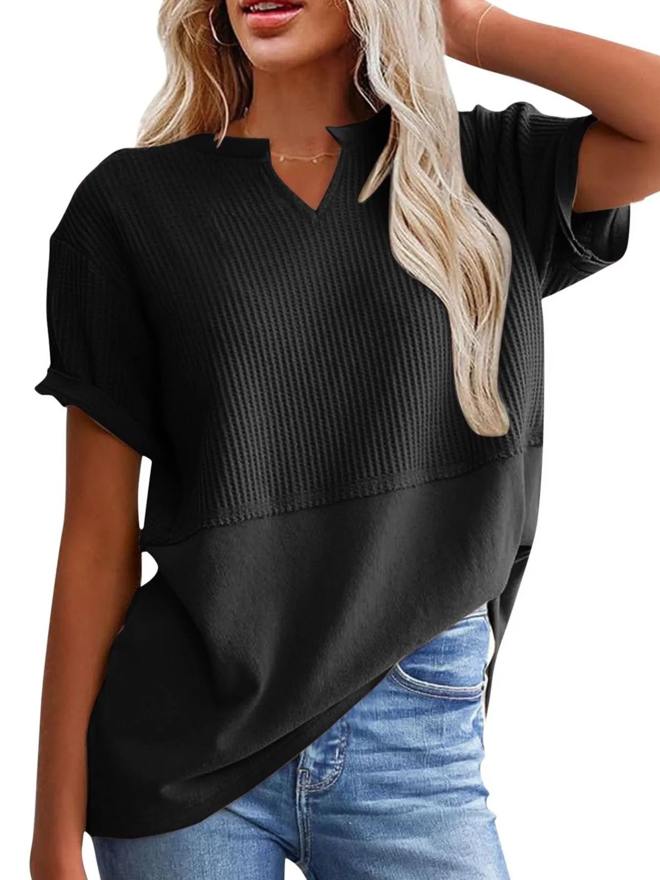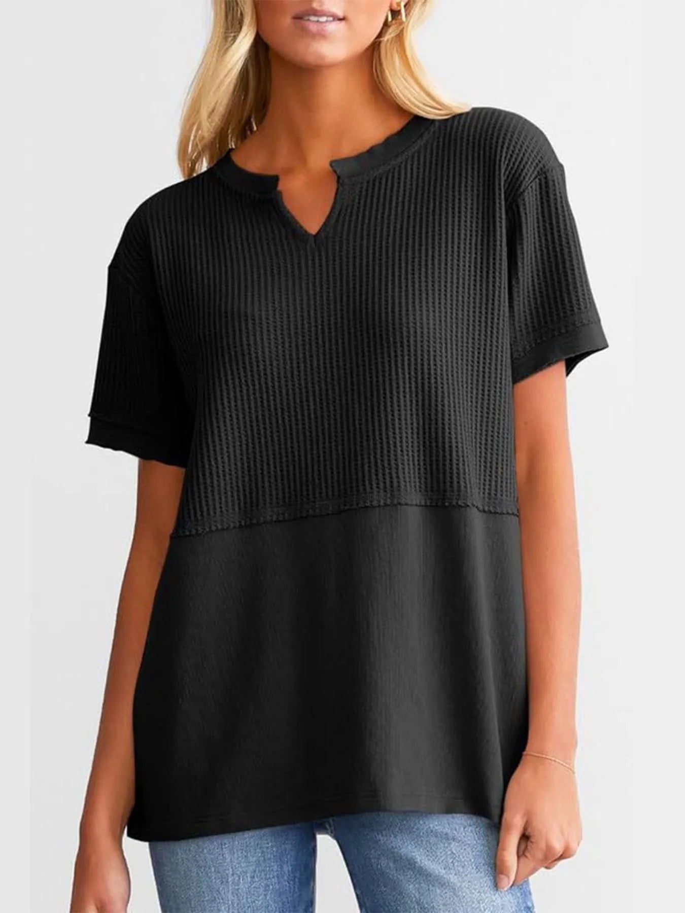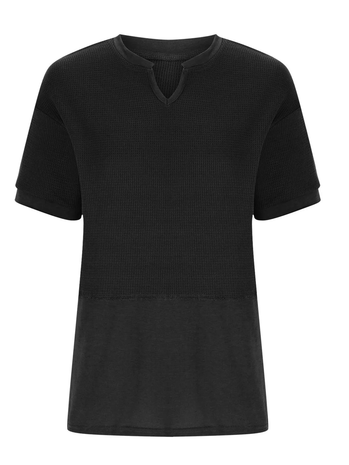 Texture Notched Short Neck T-Shirt