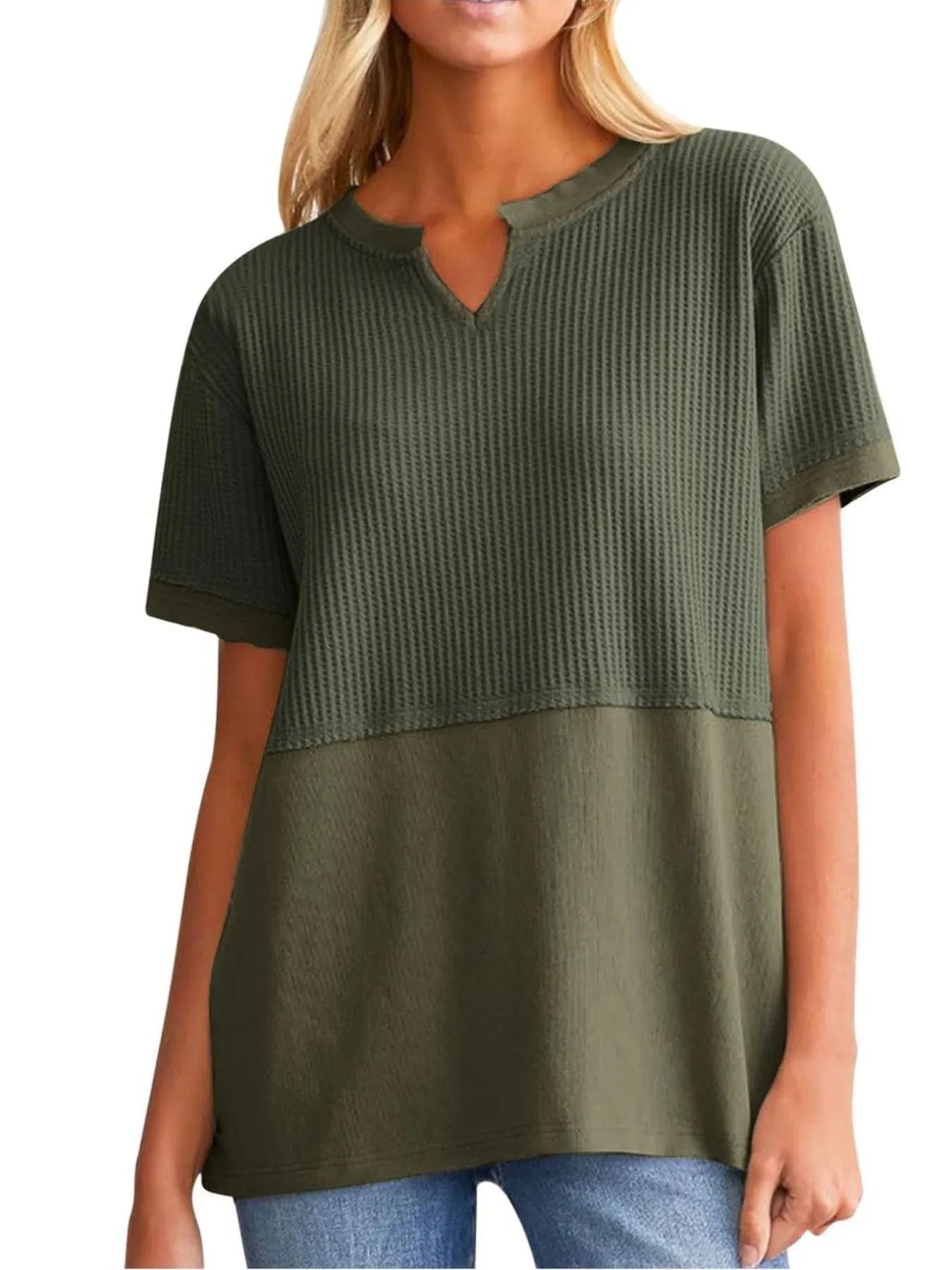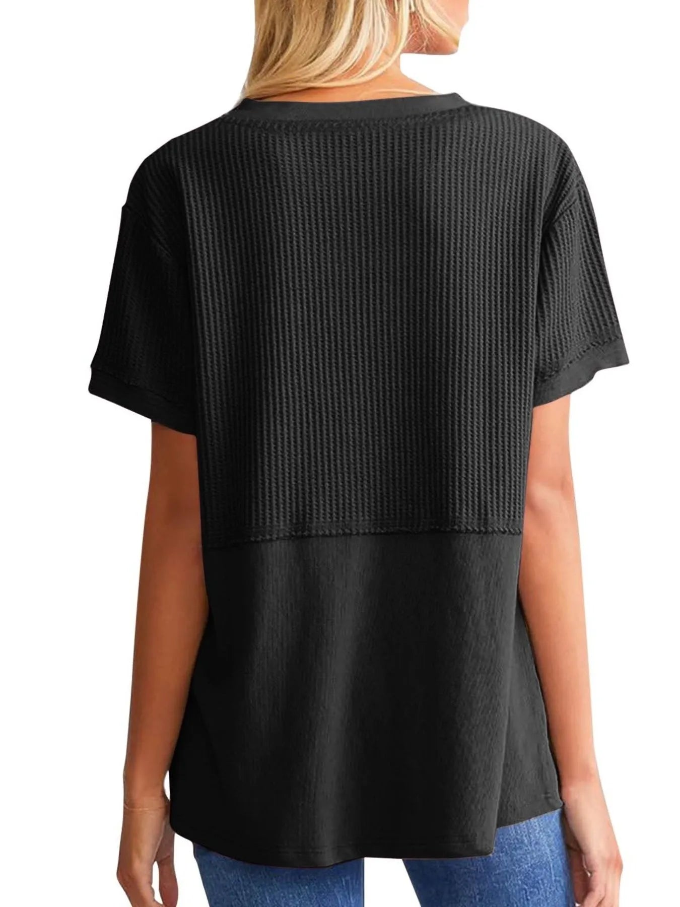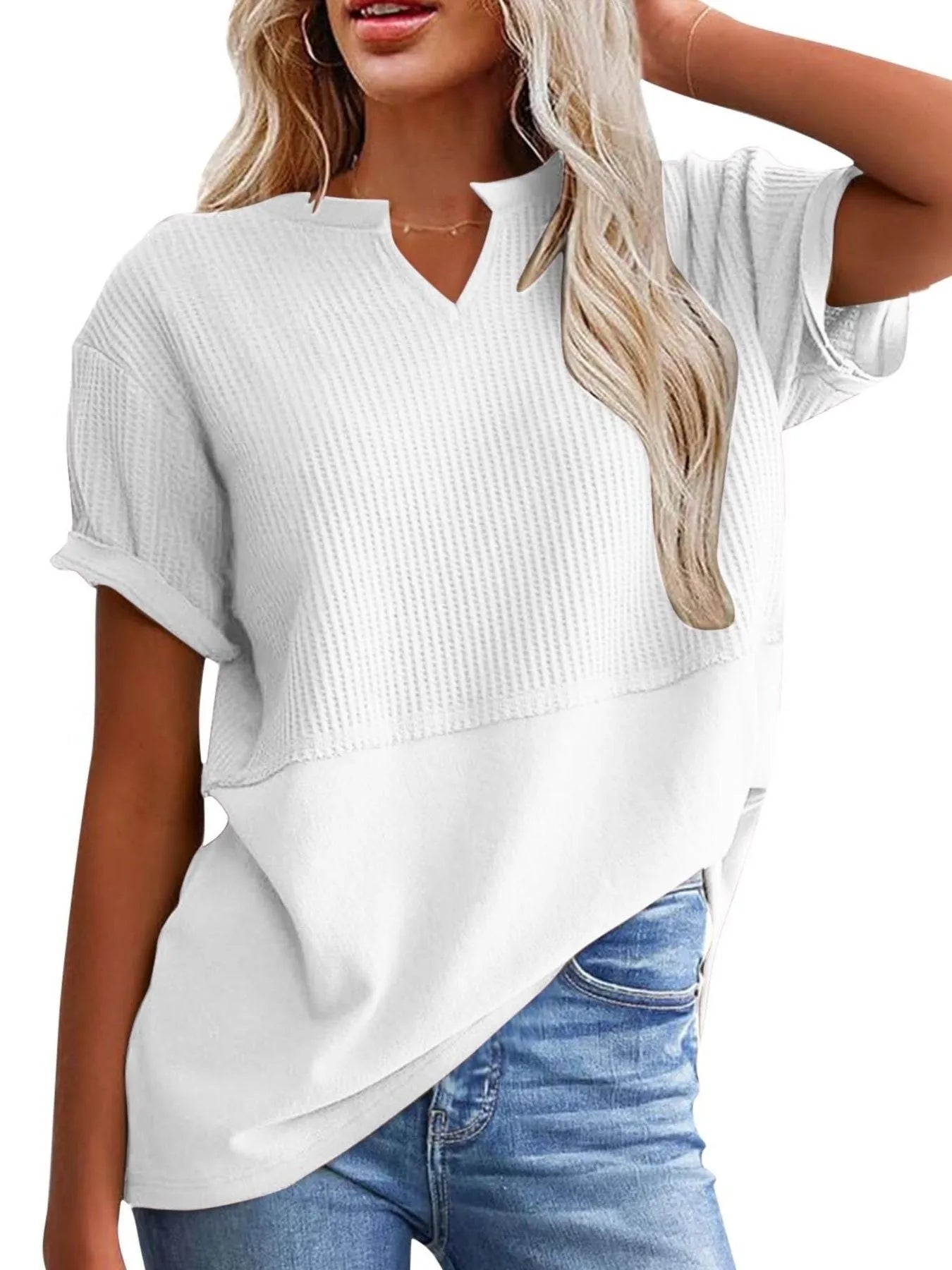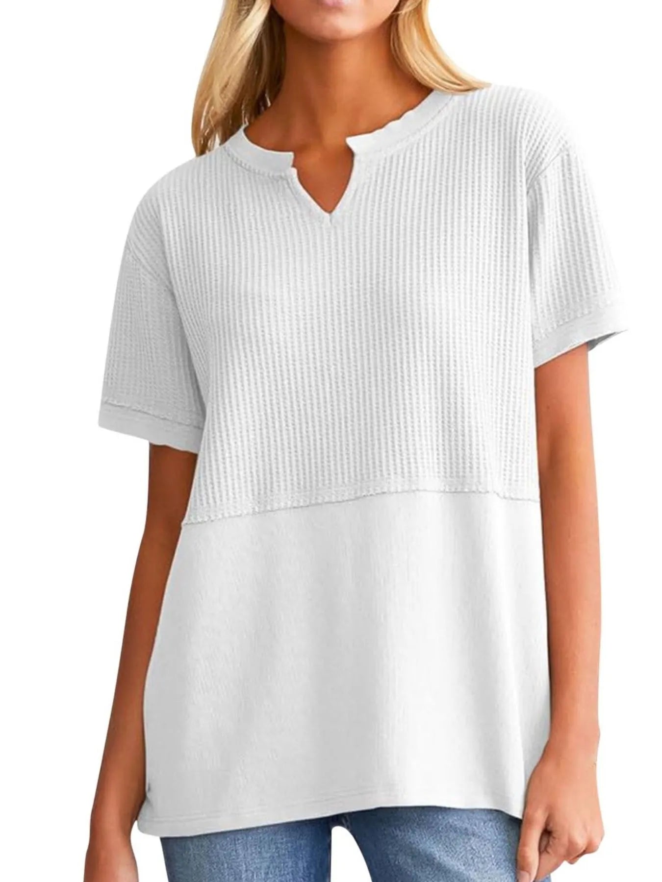 Texture Notched Short Neck T-Shirt