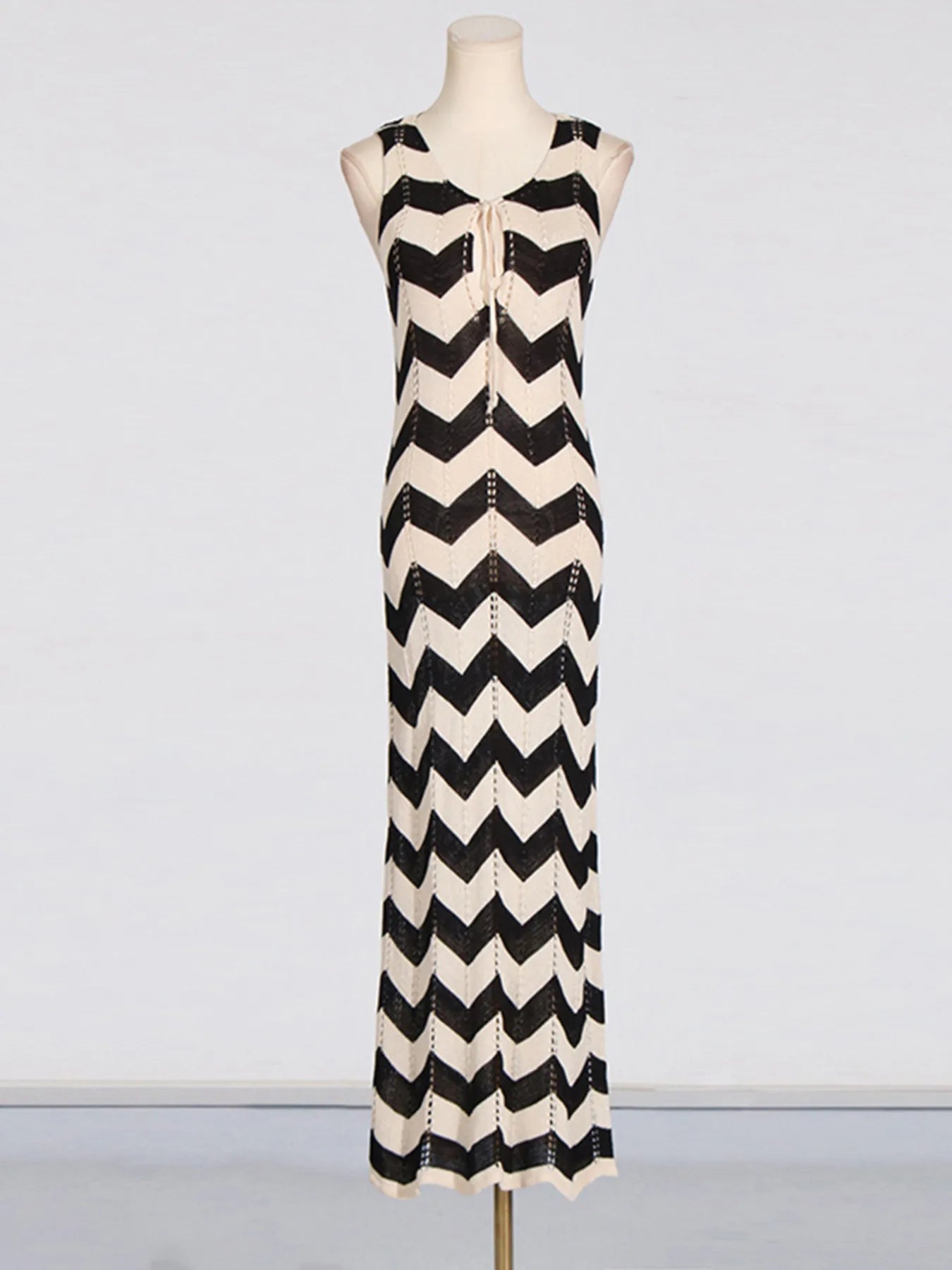 Tie Front Chevron Striped Maxi Dress