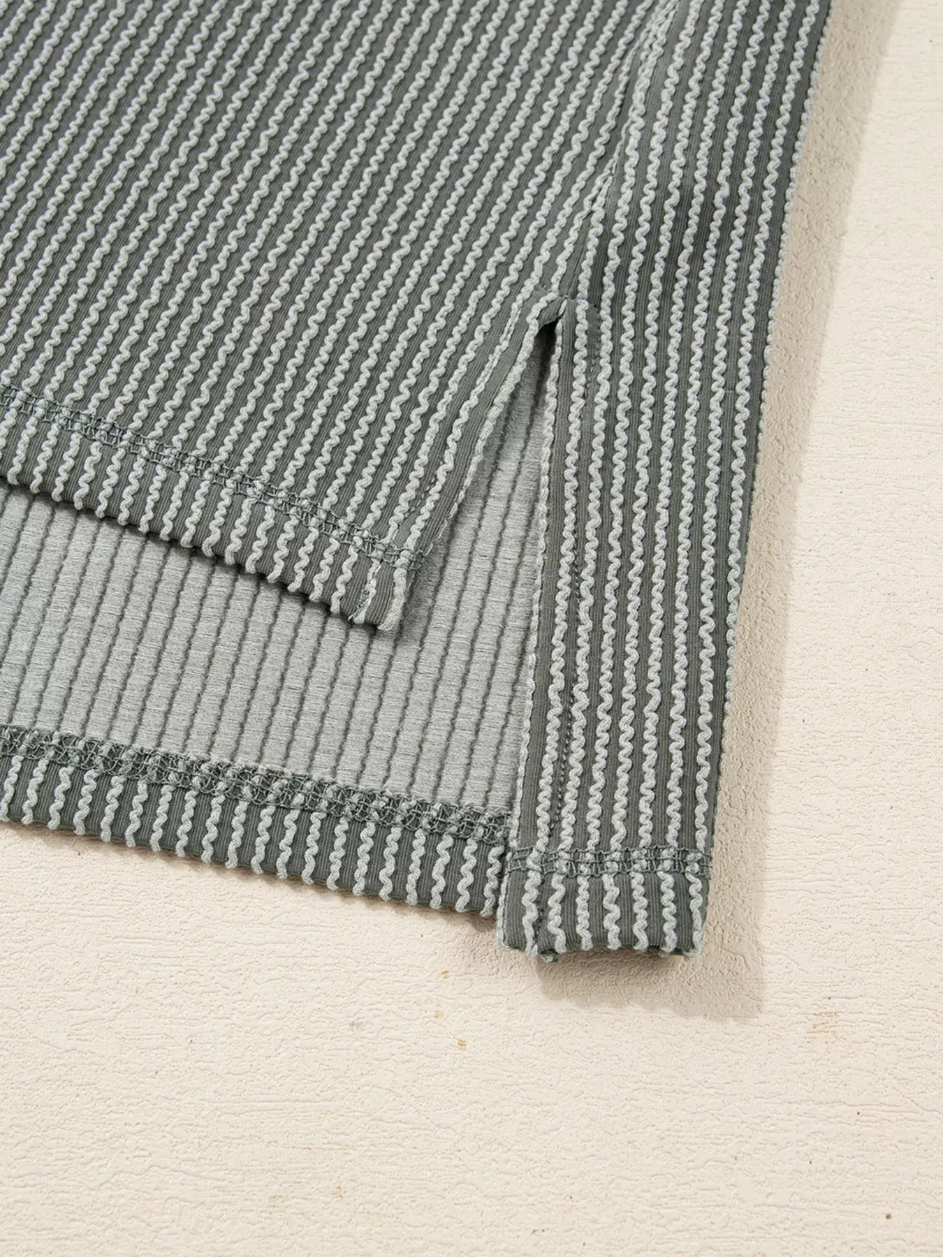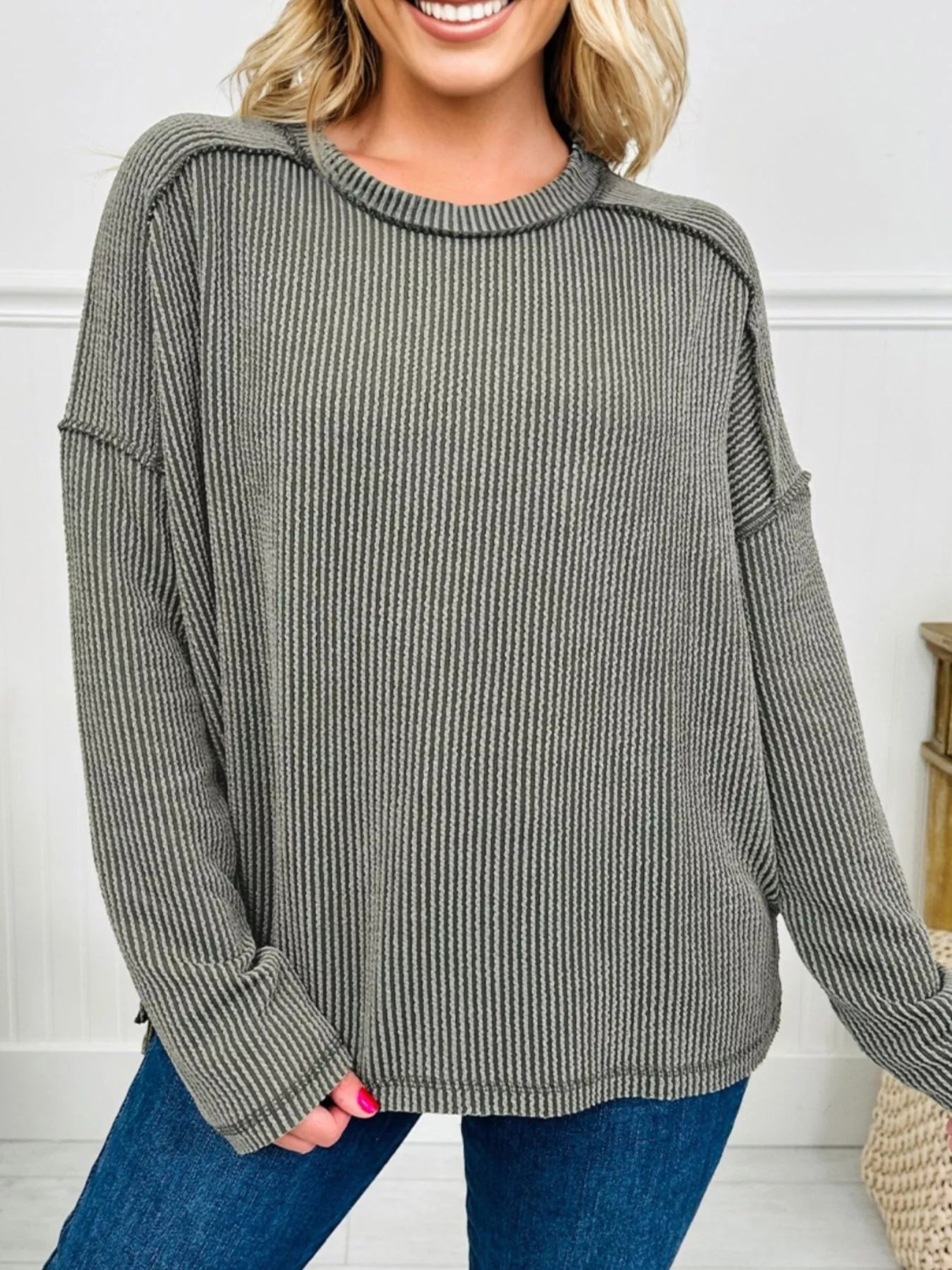 Twist Ribbed Exposed Seam Detail Long Sleeve Loose Top
