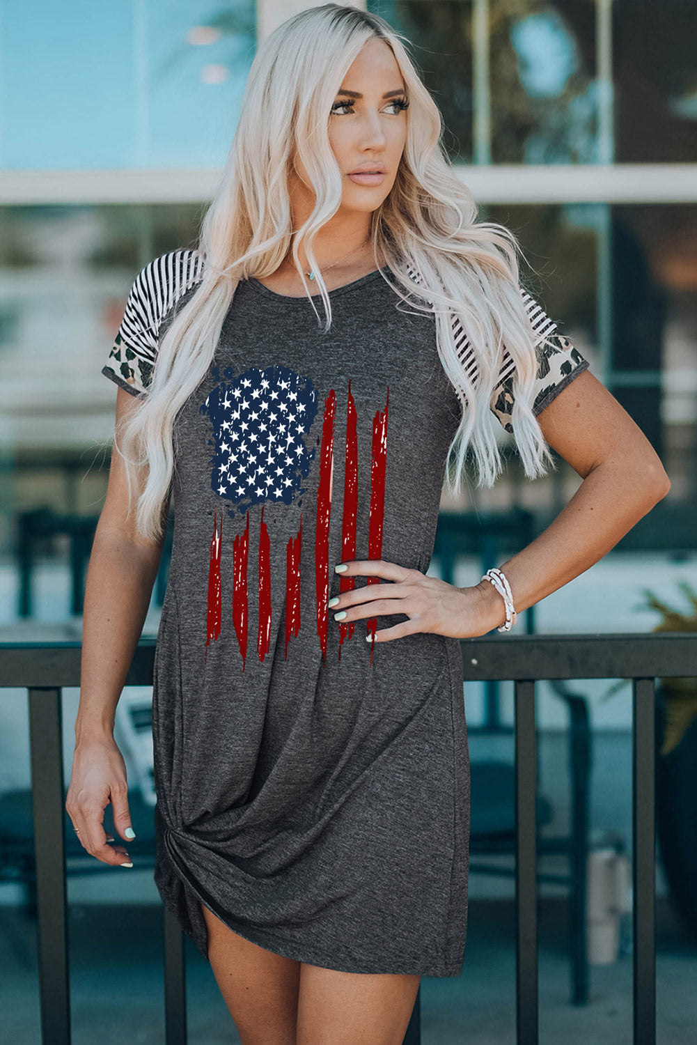 US Flag Graphic Twisted Raglan Sleeve Dress
