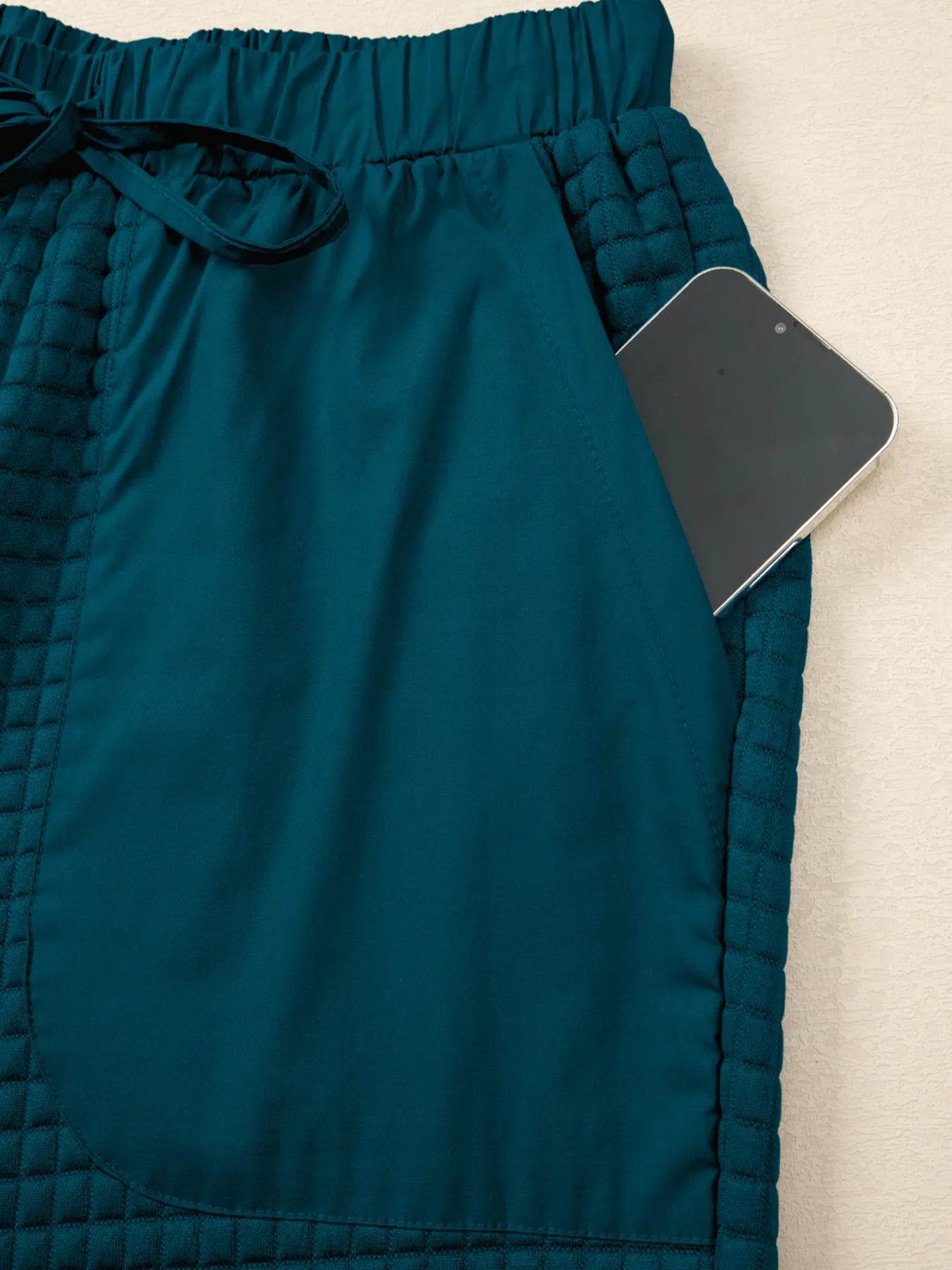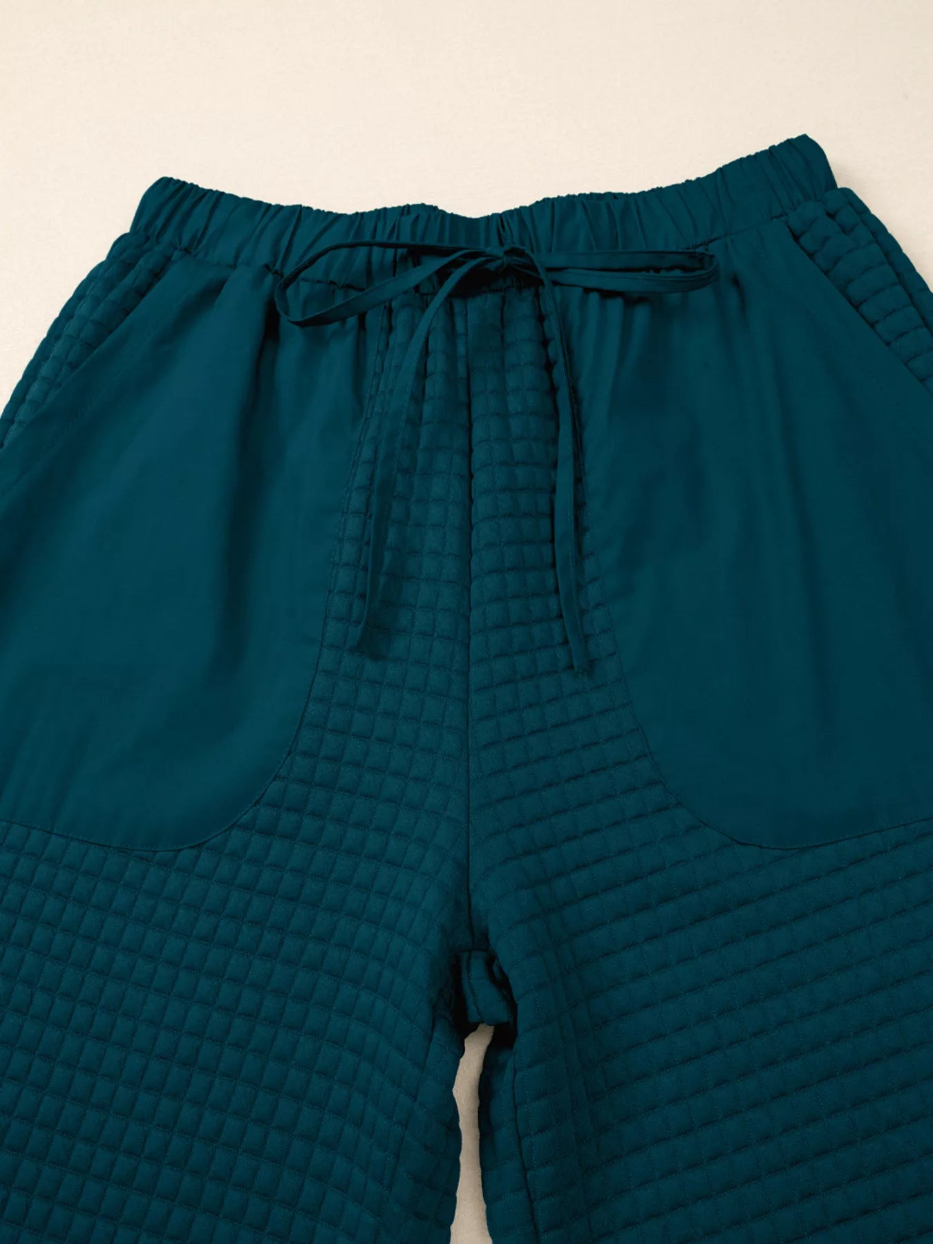 Waffled Textured Raw Edge Patchwork Top and Pants 2pcs Set