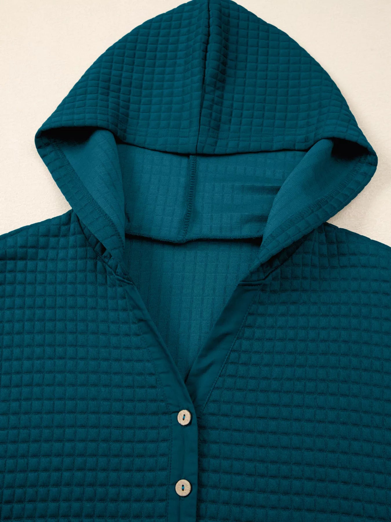 - Features:Waffle-Knit,Buttoned,Drawstring