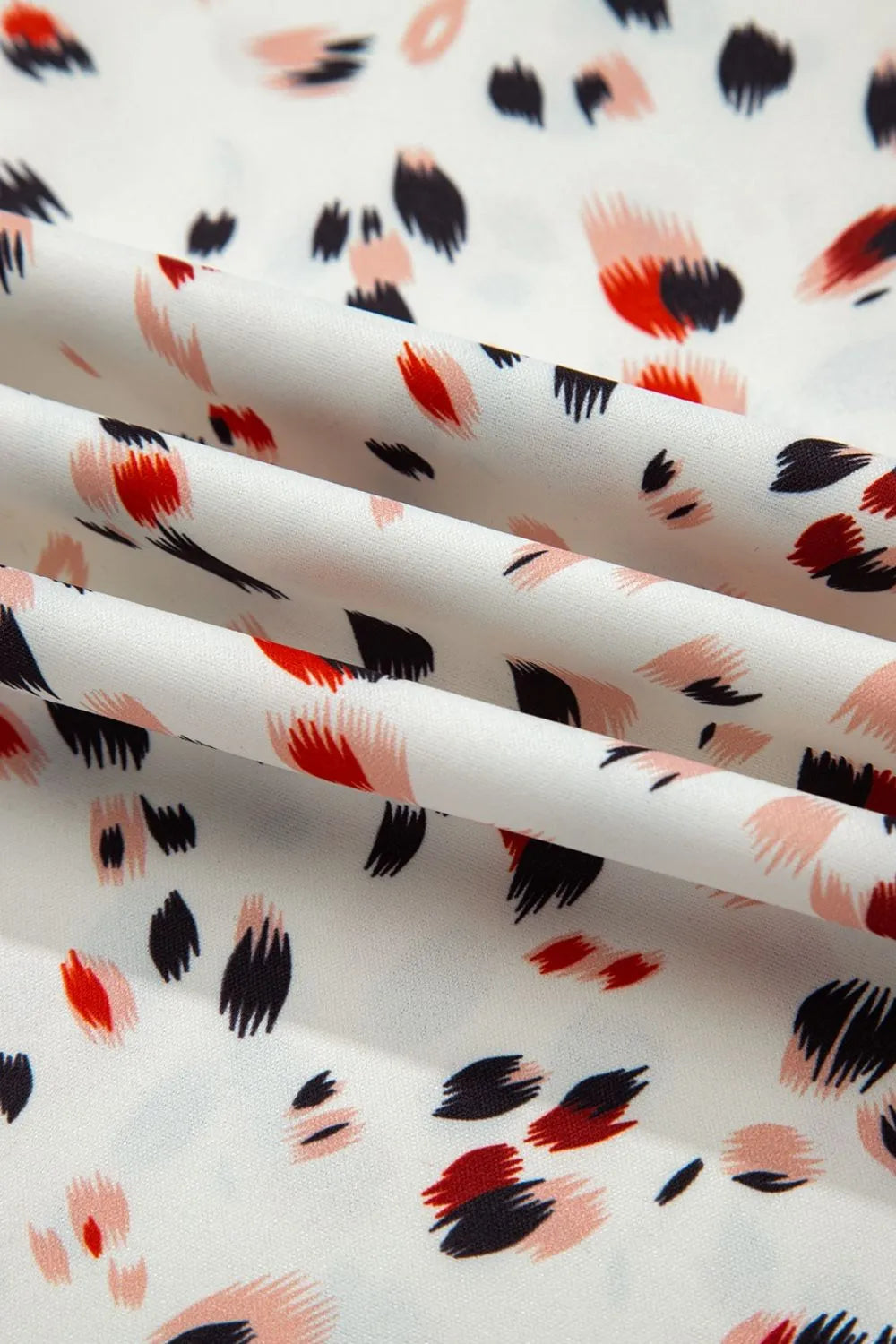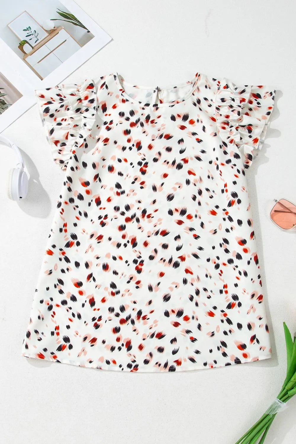 Abstract Print Ruffle Flutter Sleeve Keyhole Back Slim Blouse