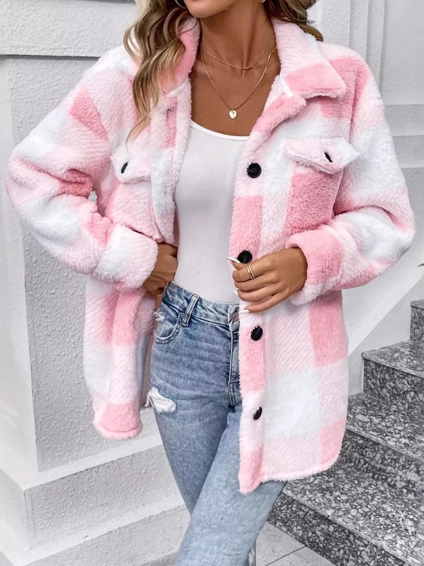 Plaid Fleece Button-Up Outerwear